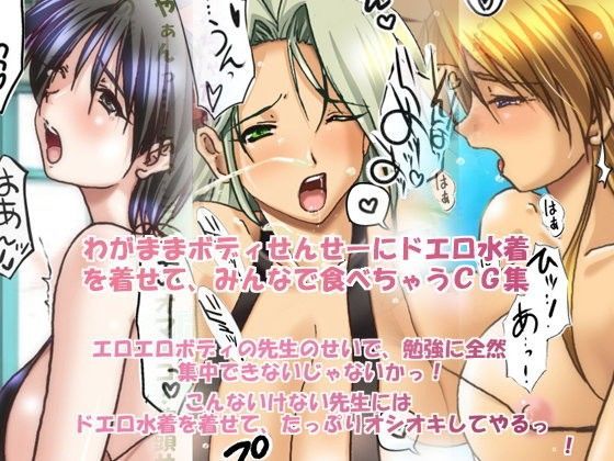 巨乳の美人せんせーにドエロ水着を着せて犯しまくるCG集です。